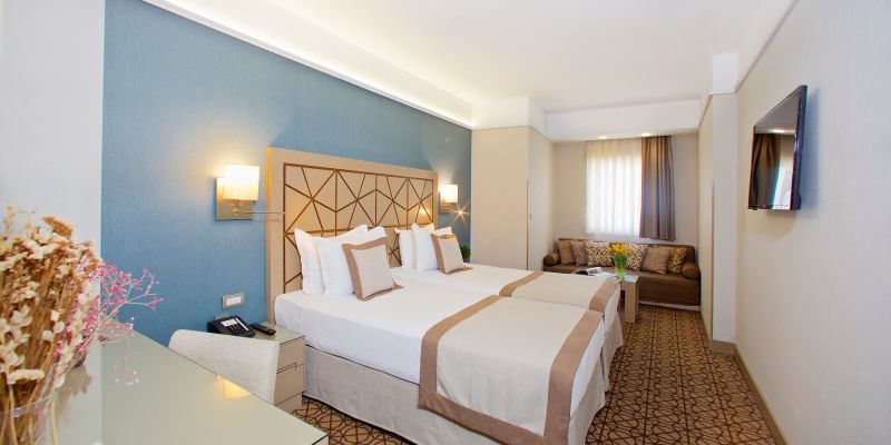 Номера оформлены в современном стиле и продуманы для комфортного отдыха после насыщенного дня. Современная мебель, удобные матрасы на кроватях, спокойная цветовая гамма в номерах, эргономичные рабочие зоны и прекрасные виды на город создают ощущение уюта даже в самом динамичном районе Стамбула.