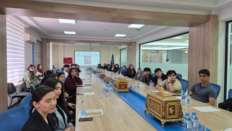 Руководитель департамента новых технологий и инноваций в искусстве Общественного объединения, член Союза художников Азербайджана Тогрул Сардарлы рассказал студентам о технологическом наследии эпохи Мирзы Кадыма Иревани и о возможности успешного сохранения нашего культурного достояния с помощью современных технологий и инновационных подходов.