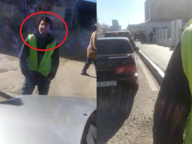 Görüntülərdə sadə vətəndaşla ərazidəki "parkovşik"in mübahisəsi öz əksini tapıb.