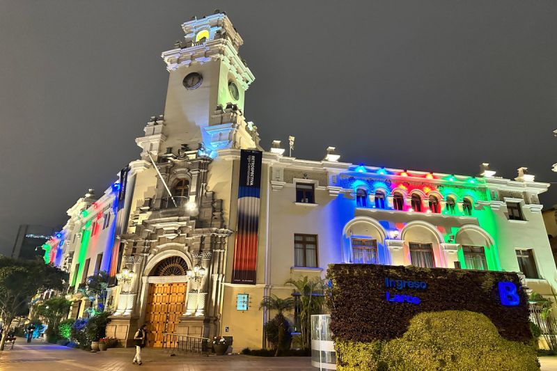 Здание мэрии в Лиме освещено цветами азербайджанского флага