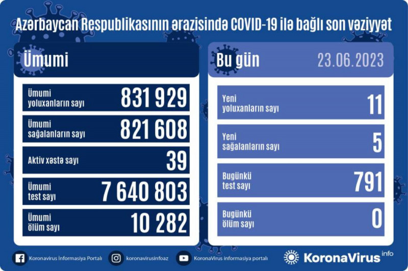 В Азербайджане выявлено еще 11 случаев заражения коронавирусом, 5 человек вылечились.