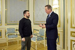 Кэмерон приехал в Киев 16 ноября, где встретился с Зеленским. В ходе переговоров они обсудили вопросы, связанные с обороной Украины. Украинский президент назвал эту встречу хорошей и поблагодарил Великобританию за помощь.